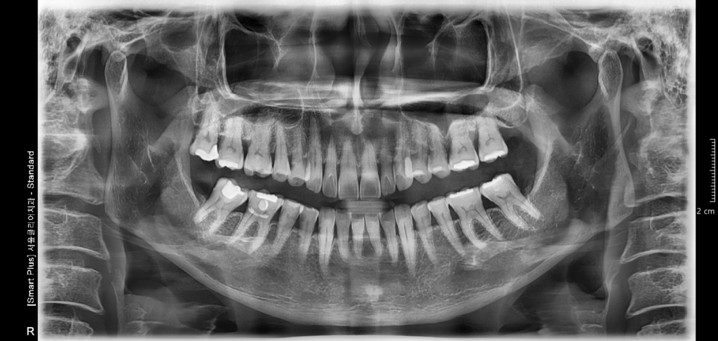 파노라마 사진은 입안 전체의 치아 상태를 한번에 확인 할 수 있어서 매우 유용합니다.